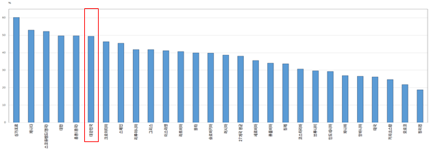 -인지적 평가 결과, 우리나라 학생들의 평균 정답률은 49.4%로,참여국 평균보다 약 11%p 높았다.