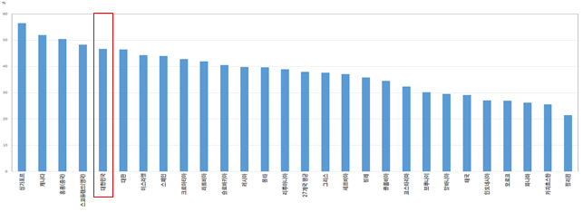 <인지적 평가에 참여한 27개국의 평균 정답률>