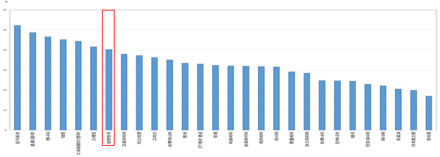 -인지적 평가 결과, 우리나라 학생들의 평균 정답률은 40.4%로,참여국 평균보다 약 7%p 높았다.
