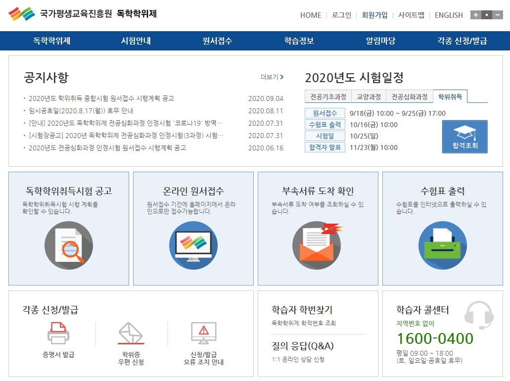 올해의 경우 5월에 2과정, 6월에 1과정, 8월에 3과정, 10월에 4과정 시험이 이루어졌는데요.(코로나19확산으로 인한 일부 조정) 혹시 내년 시험에 응시하고자 하시는 분께서는 독학학위제 누리집을 참고해주시면 좋을 것 같습니다.