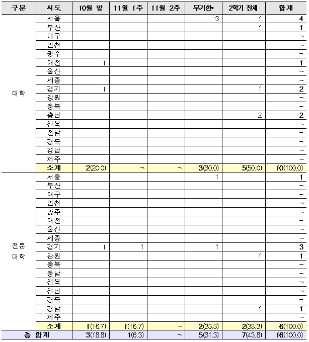 - 전면 비대면 수업을 운영하는 대학이 10.19.자 기준보다 6개교 감소