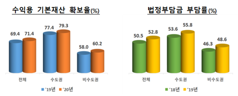 수도권 대학의 수익용 기본재산 확보율은 79.3%로 전년(77.4%)보다 1.9%p, 비수도권 대학은 60.2%로 전년(58.0%)보다 2.2%p 상승했다.