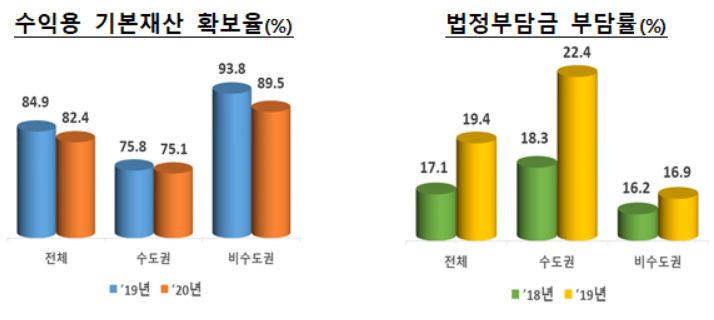 수도권 대학의 수익용 기본재산 확보율은 75.1%로 전년(75.8%)보다 0.7%p, 비수도권 대학은 89.5%로 전년(93.8%)보다 4.3%p 하락했다.