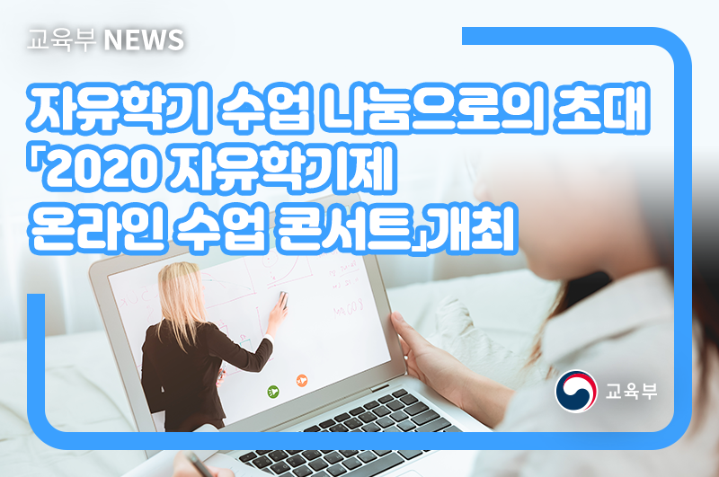 교육부(부총리 겸 교육부장관 유은혜)와 세종특별자치시교육청(교육감 최교진)․서울특별시교육청(교육감 조희연)은 11월 2일(월)부터 11월 25일(수)까지 「2020 자유학기제 온라인 수업 콘서트」를 개최한다. 올해로 다섯 번째를 맞이하는 자유학기제 수업 콘서트는 전국의 많은 선생님들이 참여할 수 있도록 온라인으로 개최하며, 교실 수업의 변화를 위해 노력한 교원의 수업 사례를 함께 나누고 자유학기에 대한 의견을 공유하기 위해 마련하였다.
