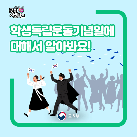 안녕하세요. 교육부 국민 서포터즈입니다. 혹시 오늘이 무슨 날인지 알고 계신가요? 바로 학생 독립운동기념일입니다. 아마 많은 분들께서 잘 모르고 계시지 않았을까 하는데요, 오늘은 학생독립운동기념일에 대해서 알아보고, 그 의미를 되새겨 보고자 합니다.
