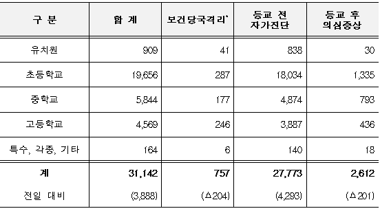 □ 학생 미등교 사유별 현황(11.3. 16시 기준)<단위 : 명>