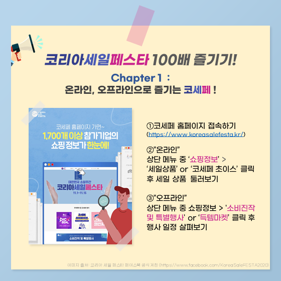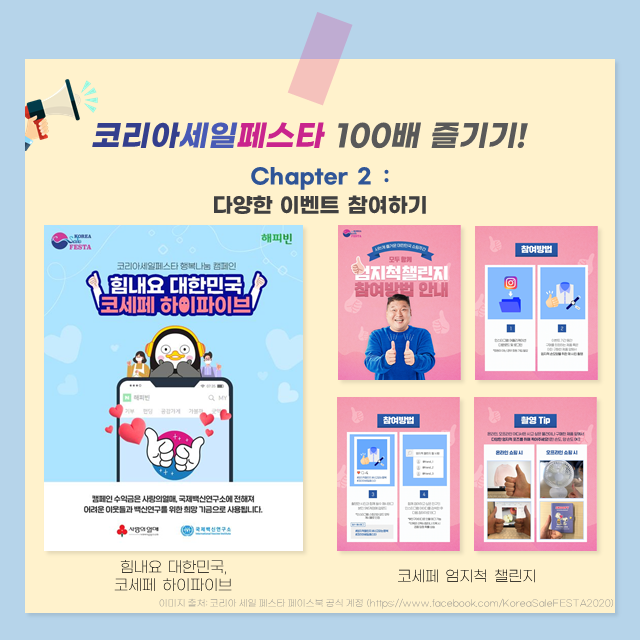 - 코리아 세일 페스타 페이스북 공식 계정 (https://www.facebook.com/KoreaSaleFESTA2020)