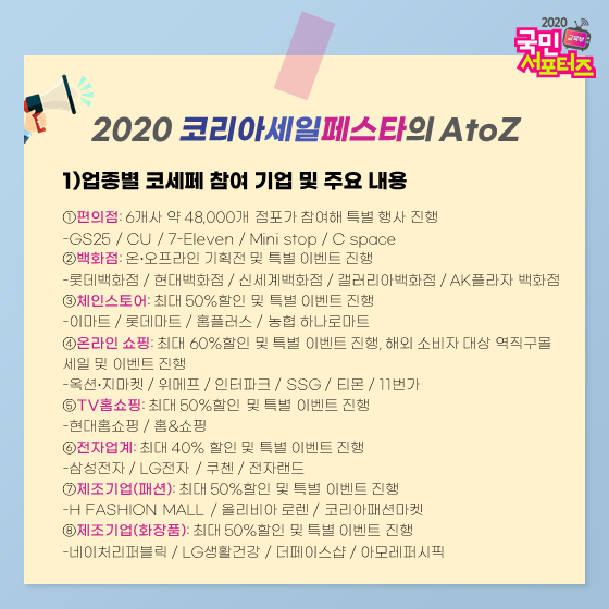 그렇다면, 역대 코리아세일페스타와 차별화되는, 2020 코리아세일페스타만의 특징은 무엇일까요!?