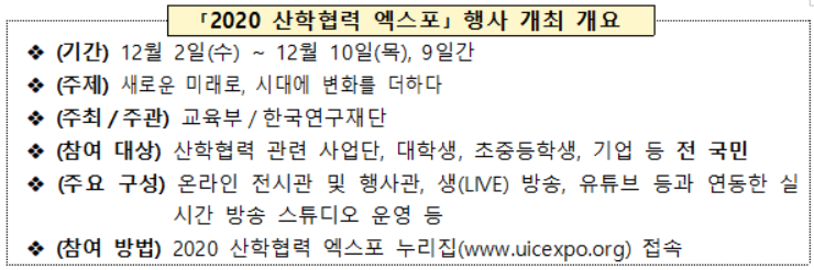 * 2020 산학협력 엑스포 누리집: www.uicexpo.org