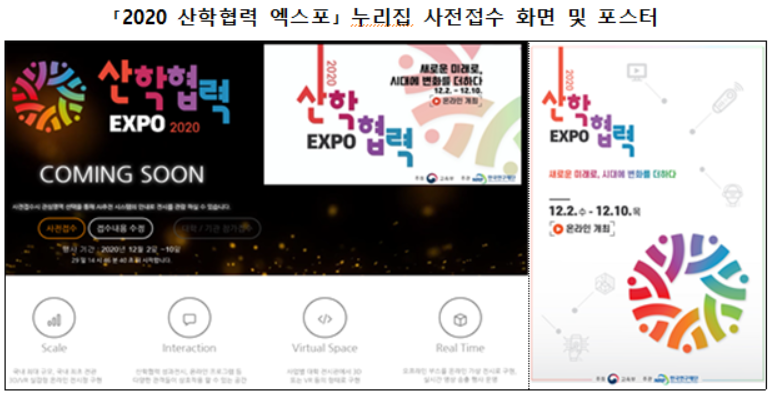 교육부(부총리 겸 교육부장관 유은혜)와 한국연구재단(이사장 노정혜)은 「2020 산학협력 엑스포」 누리집(www.uicexpo.org)을 통해 11월 10일(화)부터 온라인 사전접수를 시작한다.