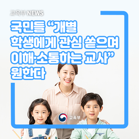 국민들 “개별 학생에게 관심 쏟으며 이해·소통하는 교사”원한다 본문
