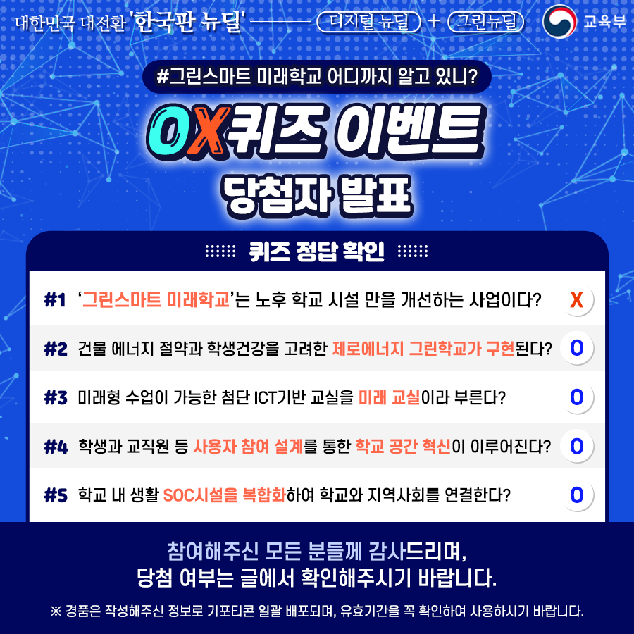 #그린스마트미래학교 어디까지 알고 있니? ⭕❌ 퀴즈 #이벤트 #당첨자발표🎉 본문
