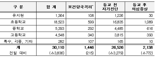 학생 미등교 사유 및 진단검사 현황