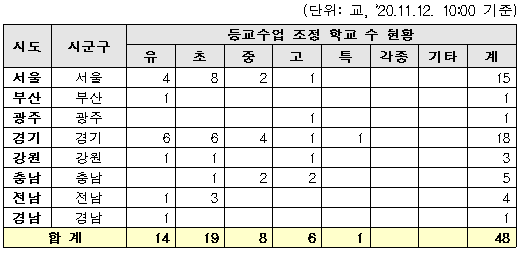 - 8개 시·도 48교 등교수업일 조정