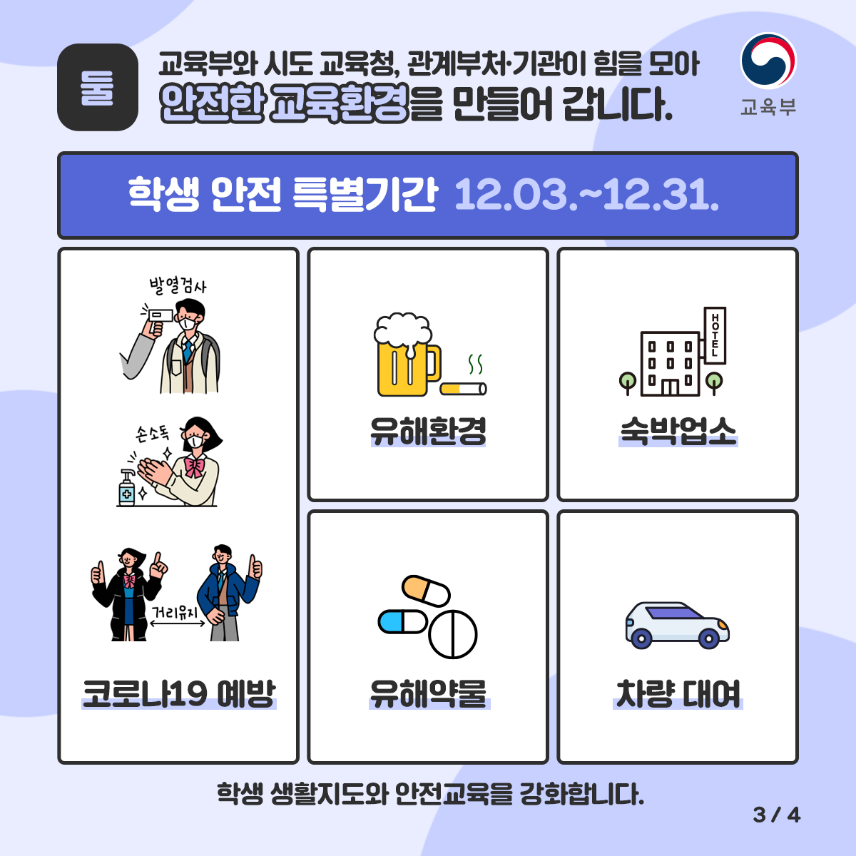 등교·원격수업에서 활용 가능한 1,900여개의 프로그램을 지원하고 12월 3일부터 12월 31일까지 학생안전특별기간을 운영합니다.