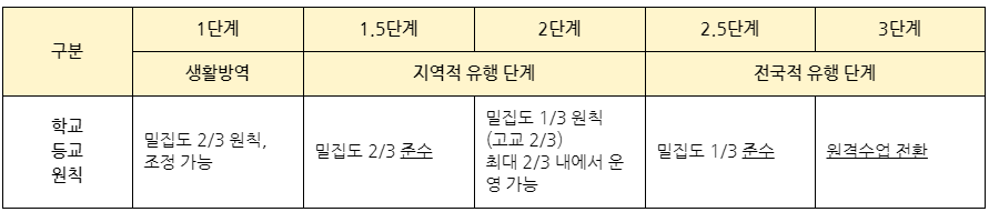 <참고: 거리두기 단계별 밀집도 등 등교 원칙(11.1.~)>