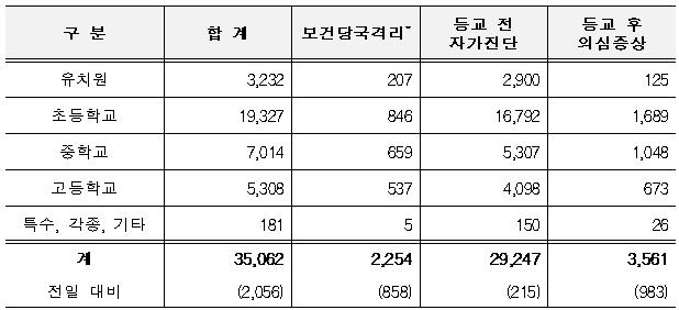 학생 미등교 사유 및 진단검사 현황