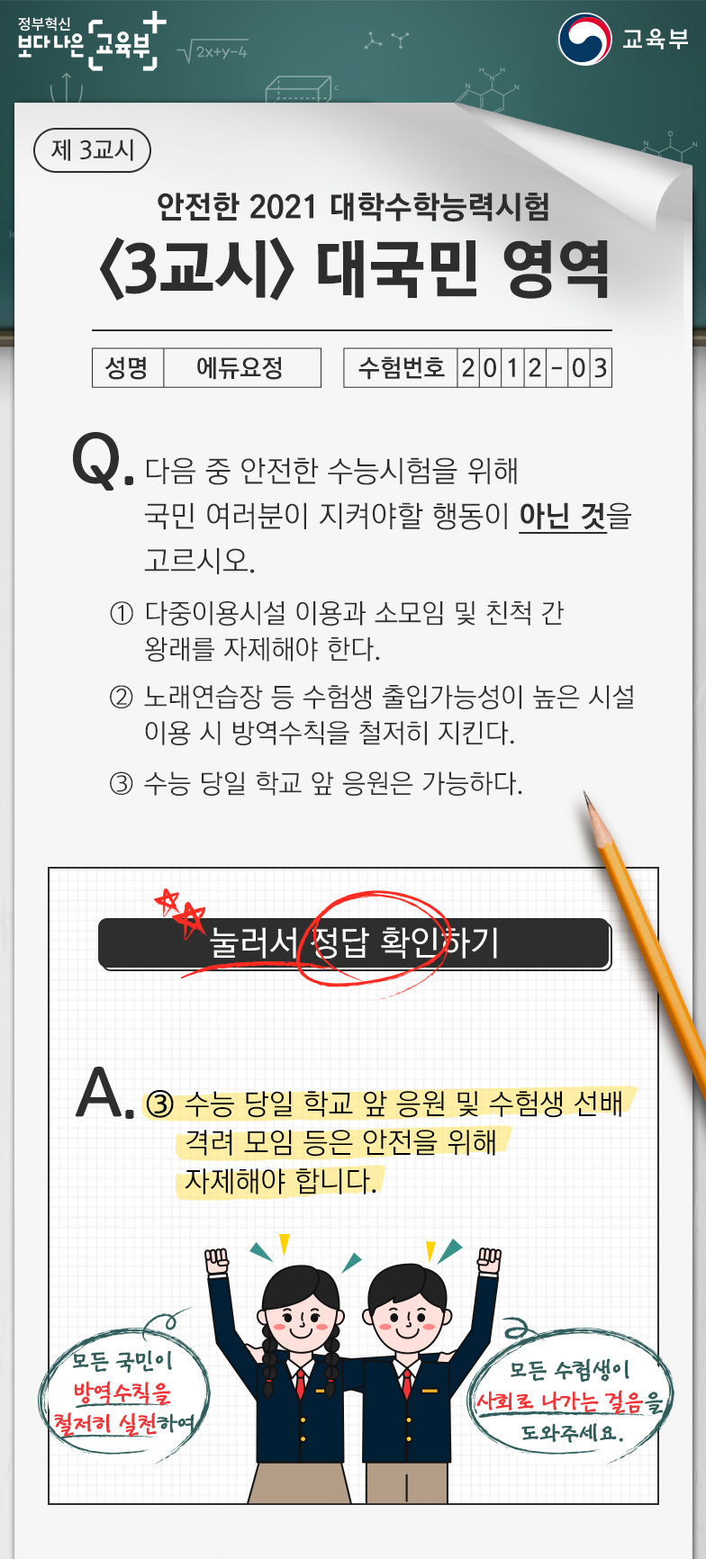 안전한 2021 대학수학능력시험을 위한 퀴즈✏️ 본문