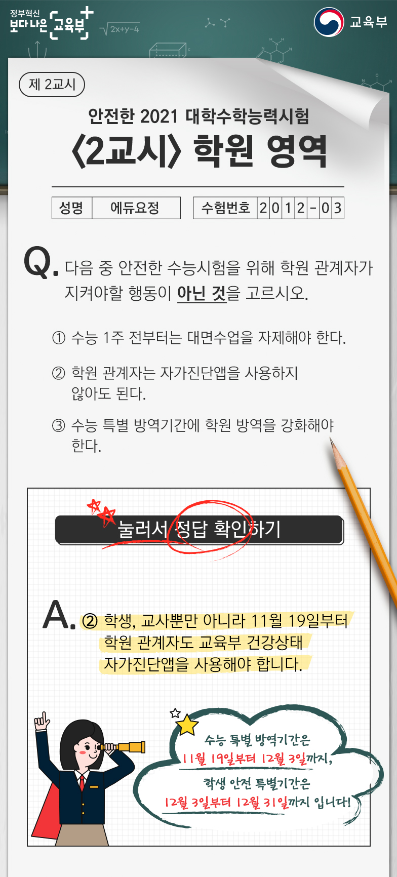 안전한 2021 대학수학능력시험을 위한 퀴즈✏️ 본문