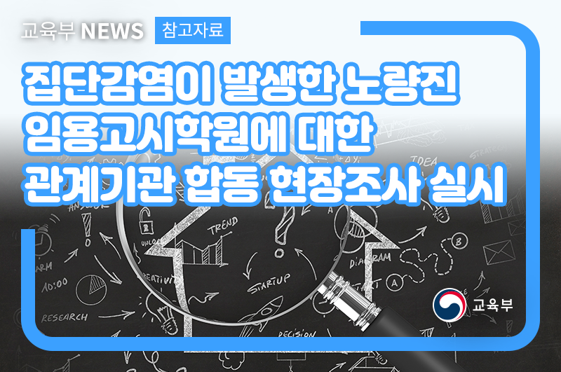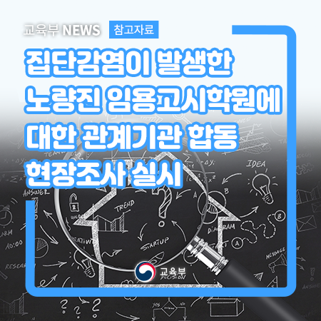 교육부, 질병관리청 등은 집단감염이 발생한 노량진 임용고시학원에 대해서 관계기관 합동으로 11월 23일(월) 현장 실태조사를 실시한다.