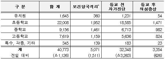 □ 학생 미등교 사유별 현황(11.23. 16시 기준) <단위 : 명>