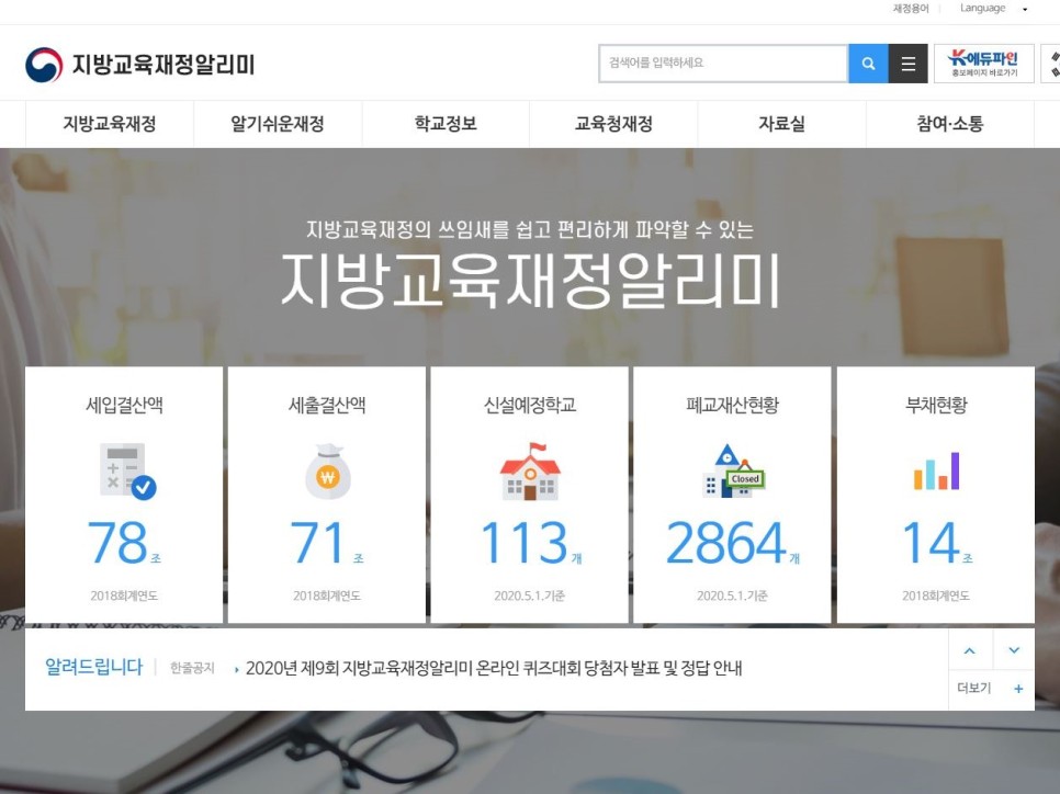 지방교육재정에 대한 모든 것, 지방교육재정알리미에서! 본문