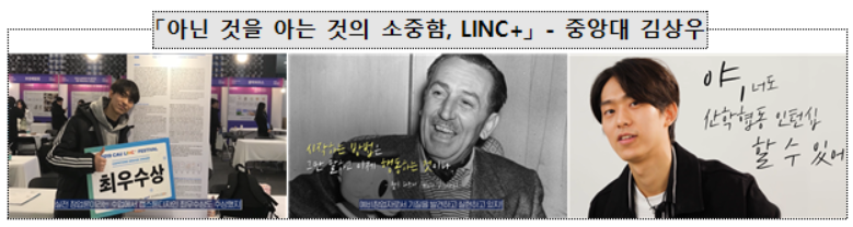 「산학연계 교육과정 영상콘텐츠 공모전」 대상을 수상한 중앙대학교 김상우 학생은 “산학연계 교육과정이 사회생활의 첫걸음이자 대학생활을 하며 겪을 수 있는 좋은 기회로, 이를 통해 많은 이들이 본인의 적성을 찾을 수 있기를 바란다.”라고 밝혔다. 「캡스톤디자인 경진대회」에서 대상을 수상한 팔로우 업(Follow-up) 팀은 “가벼운 농담에서 아이디어가 시작되었다.”라며, “앞으로도 많은 학생들이 캡스톤디자인에 참여해 창의적인 아이디어들을 펼치는 기회를 가졌으면 좋겠다.”라고 말했다.