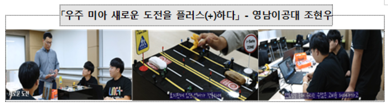 영남이공대 조현우(컴퓨터정보과) 학생은 또 한 명의 대상 수상자로, 사회맞춤형학과 ‘융합소프트웨어반’에 참여하여 협약산업체의 상담 지원(멘토링) 등으로 진로를 탐색하고, 스쿨존 교통사고 예방 시스템을 개발하며 자신감을 얻게 된 경험을 공유하였다.