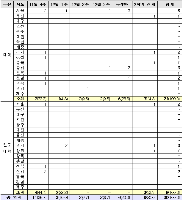 ◈ 대학 수업 운영 현황[11.23.(월) 기준]