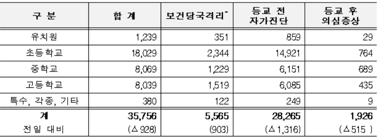 ※ 대학수학능력시험 대비 원격수업 전환학교(고등학교 및 시험장 학교)는 미포함