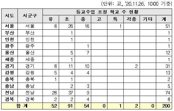 ◈ 등교수업일 조정 현황[11.26.(목) 10:00 기준]