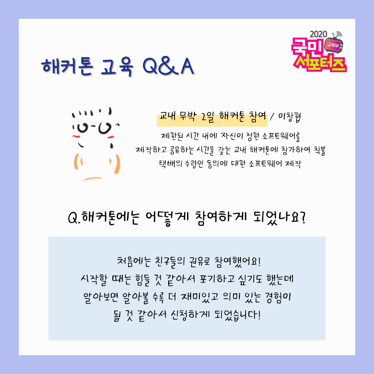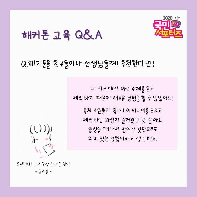 ※위 기사는 2020 교육부 국민서포터즈의 의견으로 작성되었습니다.