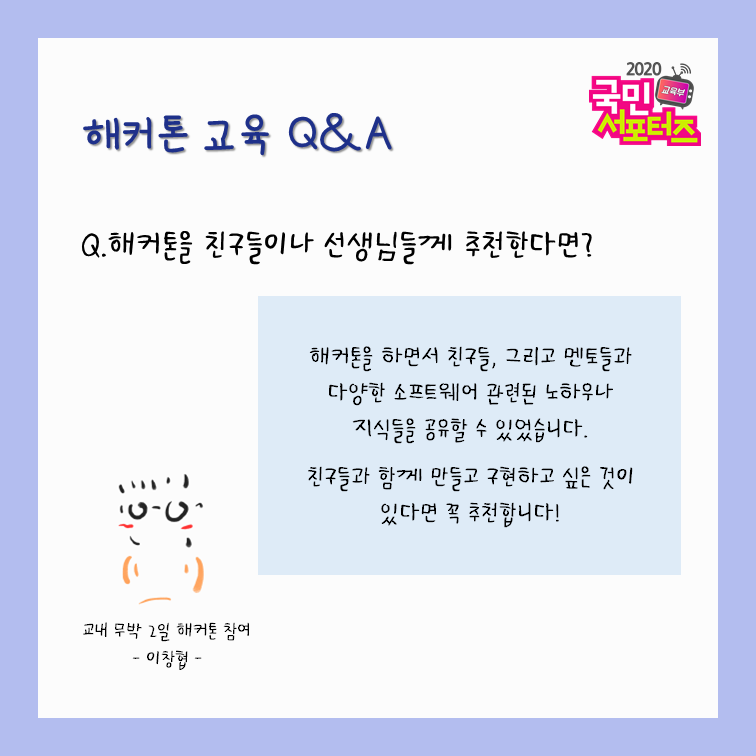 “그렇다면 실제적으로 해커톤을 통한 교육을 경험한 학생들은