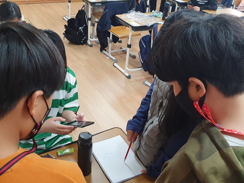 야외 그룹 사진 촬영에 초점을 맞춰 학생들은 학급 회의를 진행하였습니다. ‘어떻게 하면 우리들의 아름다운 이 순간을 추억할 수 있을까?’라고 생각하며 자신의 생각을 함께 이야기하면서 모둠 구성, 예산, 준비 시간 및 방법 등을 공유하였습니다. 학급 회의를 통해 4~5명 정도 모둠을 구성해서 사진을 찍으면 좋을 것 같다고 의견이 모아졌습니다.
