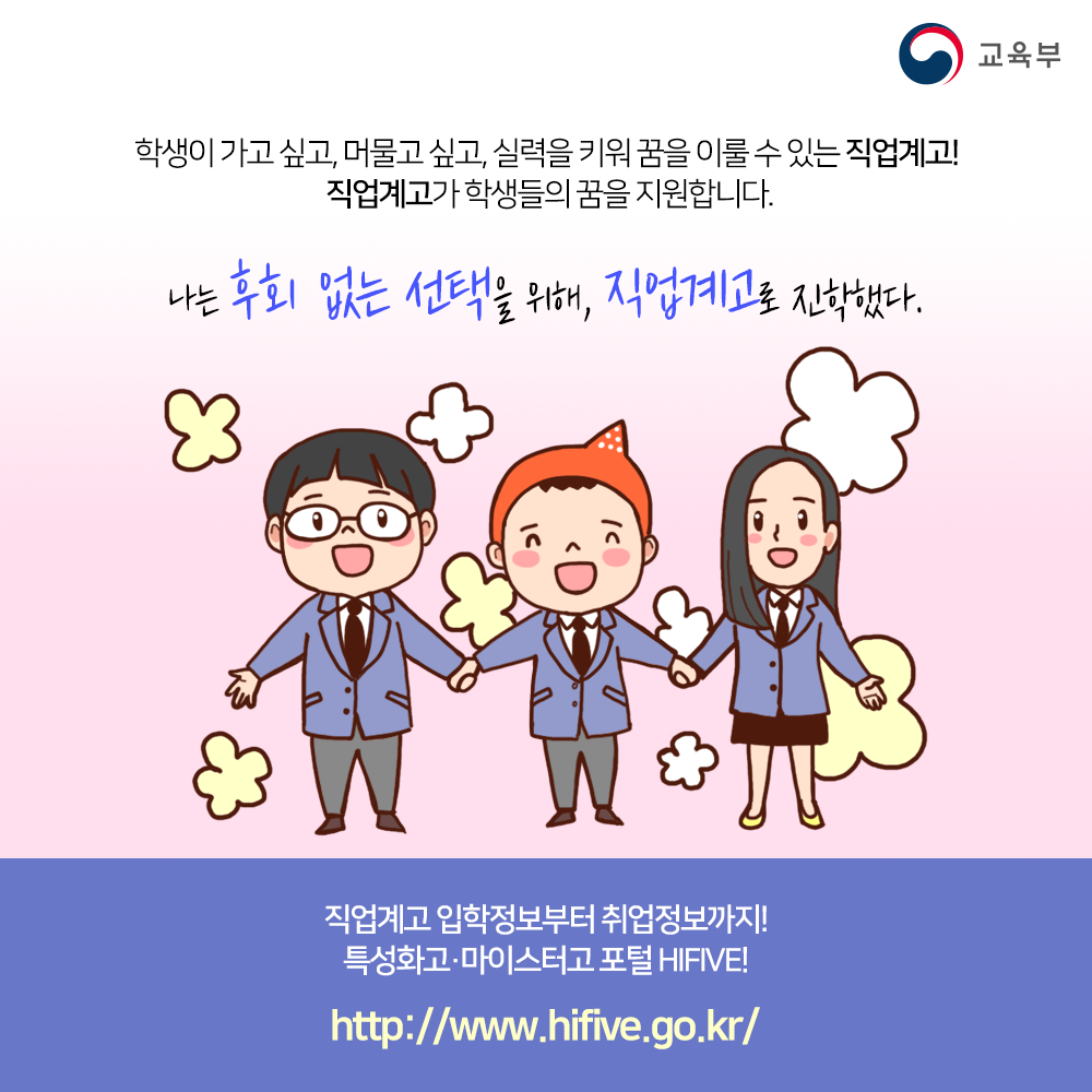 ☑️직업계고 정보를 더 알고 싶다면? www.hifive.go.kr