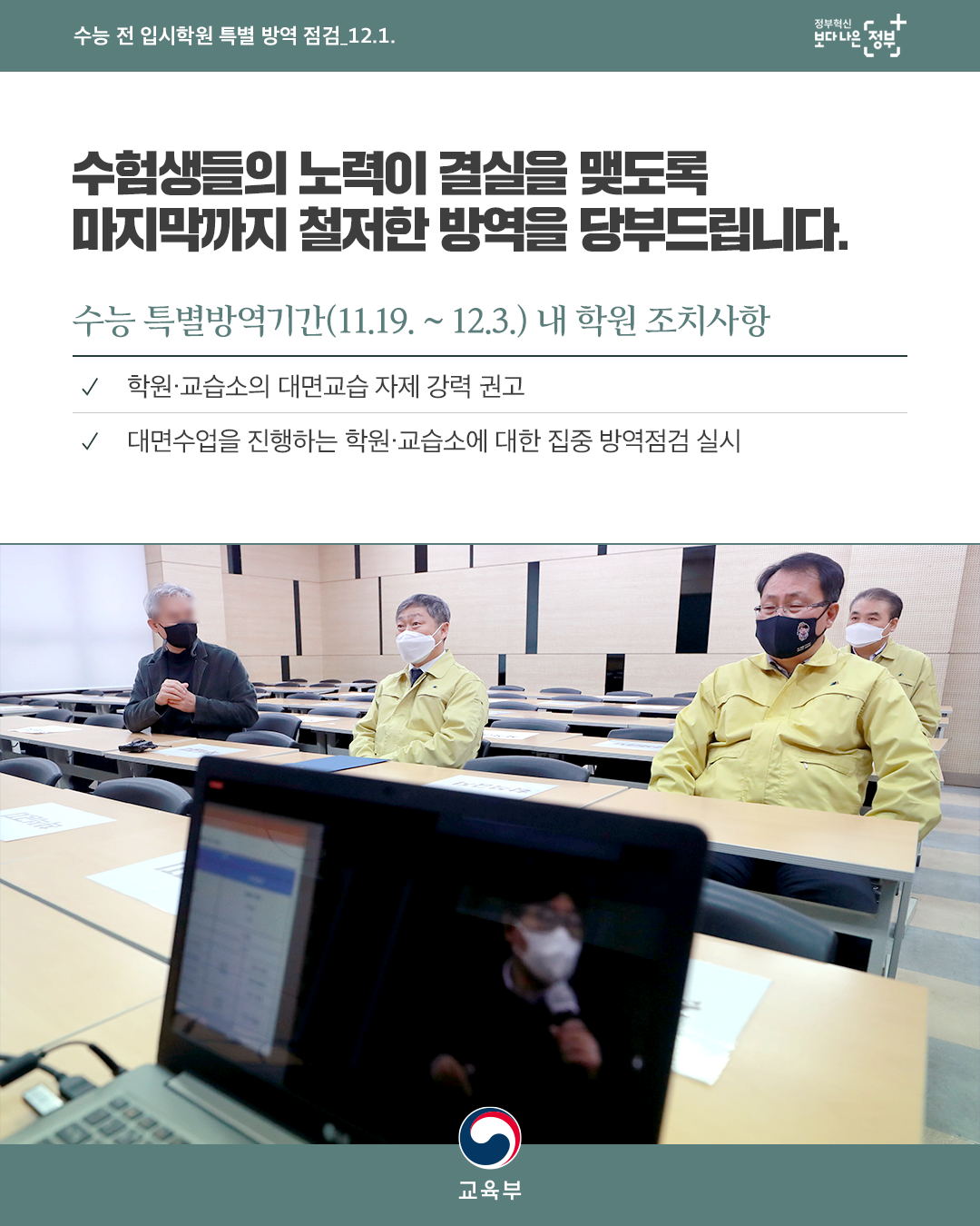 수능이 완료될 때까지 방역에 철저를 기하겠습니다.
