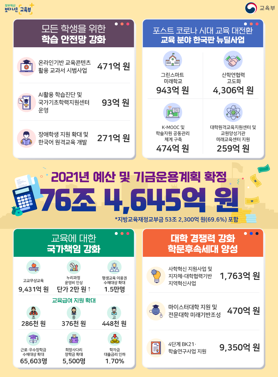 교육부의 2021년 예산 및 기금운용계획이 확정되었습니다.