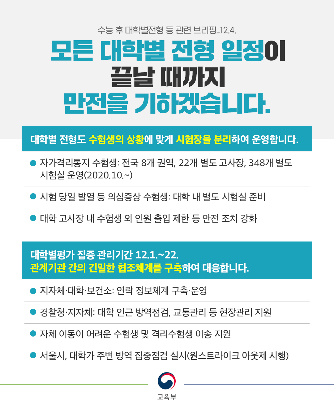#대학별평가 #집중관리 #수험생 #안전 #협조체계구축