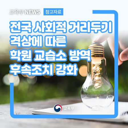 전국 사회적 거리두기 격상에 따른 학원 교습소 방역 후속조치 강화 본문