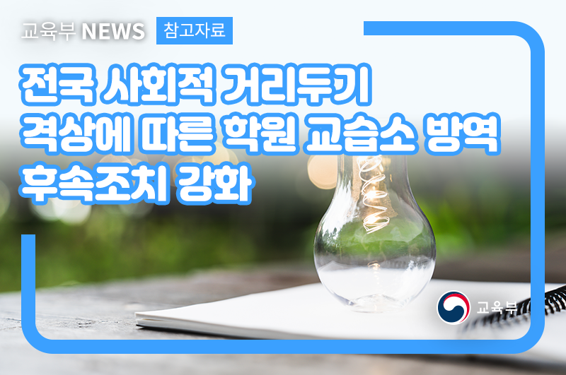 전국 사회적 거리두기 격상에 따른 학원 교습소 방역 후속조치 강화 본문