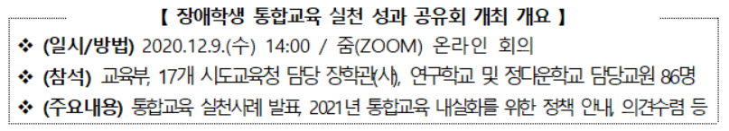 코로나19 상황에서도 장애학생을 위한 통합교육에 본보기 된 학교들! - 2020년 장애학생 통합교육 실천 성과 공유회 개최 -