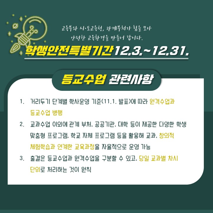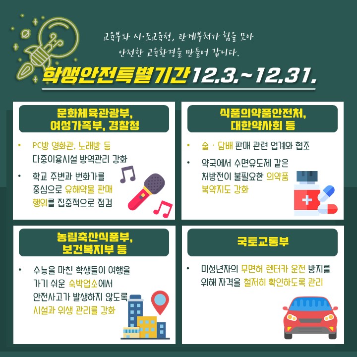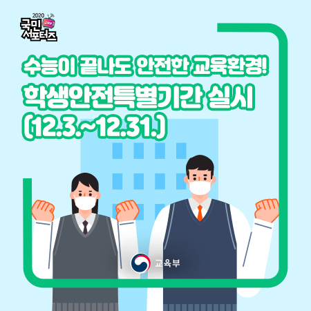 수능이 끝나도 안전한 교육환경! 학생안전특별기간 실시 (12.3.~12.31.) 본문