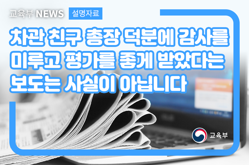 차관 친구 총장 덕분에 감사를 미루고 평가를 좋게 받았다는 보도는 사실이 아닙니다 본문