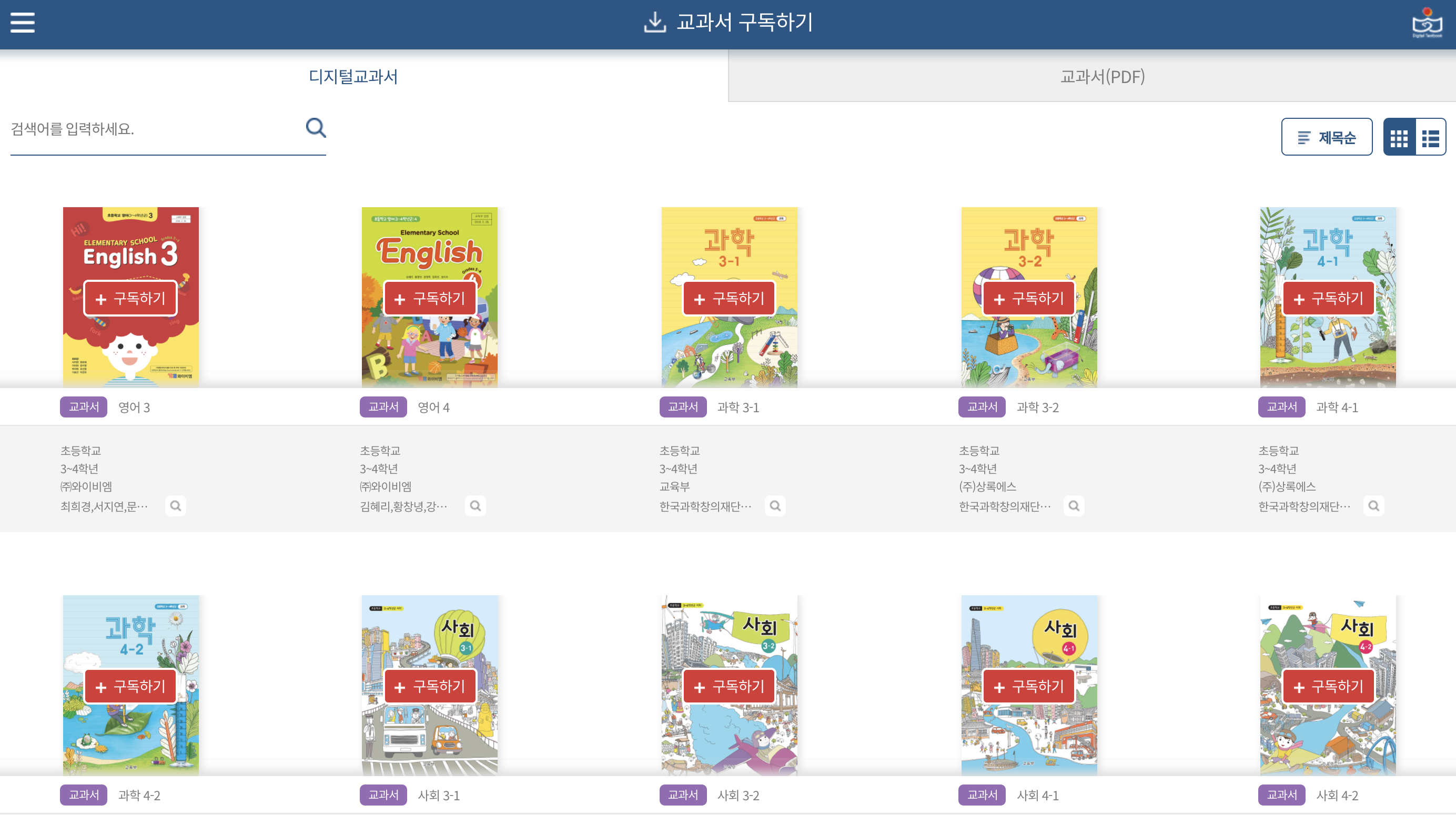 초등학교 사회, 과학, 영어 / 중학교 사회, 과학, 영어 / 고등학교 영어, 영어 I, 영어 회화, 영어 독해와 작문이 제공되고 있습니다. 디지털교과서의 종류가 다양하지만, 초등학교 과학 디지털교과서를 예로 들어보겠습니다.