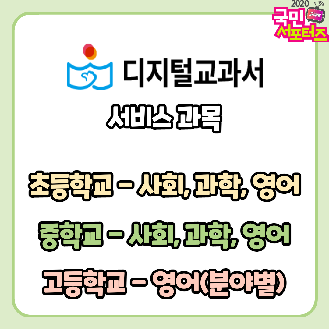 디지털교과서는 단순히 서책형 교과서를 인터넷으로 볼 수 있는 걸까요? 교과내용을 포함하는 것은 물론 관련된 다양한 자료를 접할 수 있습니다. 디지털교과서는 기존 서책형 교과서에 용어사전, 멀티미디어 자료, 실감형 콘텐츠, 평가 문항, 보충 및 심화학습 등 풍부한 학습자료와 학습 지원 및 관리 기능이 추가되고 외부자료와 연계가 가능합니다. 에듀넷·티-클리어 회원으로 가입해야 디지털교과서를 활용할 수 있습니다. 만 14세 미만 학생은 보호자의 동의가 필요합니다. 서비스 대상은 전국 초등학생, 중학생, 고등학생 및 교사입니다. 그렇다면 디지털교과서로 어떤 과목을 접할 수 있는지 알아볼까요?