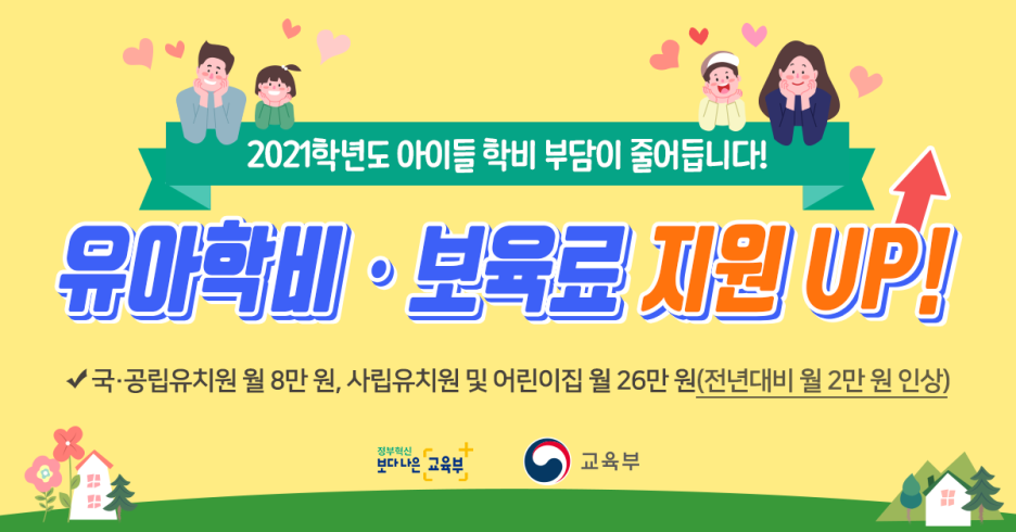 사립유치원 및 어린이집 월 26만 원 지원!!