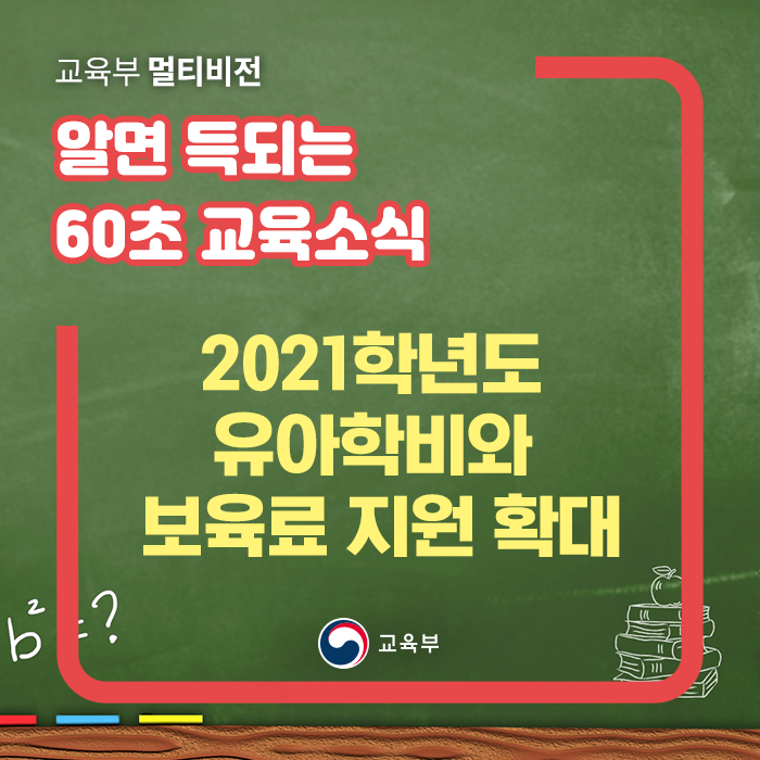 2021학년도 유아학비와 보육료 지원 확대_알면 이득 육십초교육소식_육교 [교육부] 본문