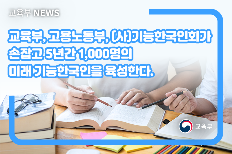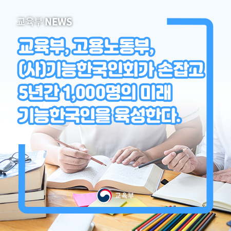 교육부, 고용노동부, (사)기능한국인회가 손잡고 5년간 1,000명의 미래 기능한국인을 육성한다. 본문