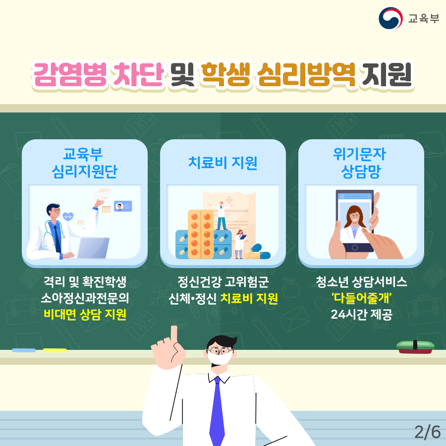 1. 교육부 심리지원단 : 격리 및 확진학생 소아정신과전문의 비대면 상담 지원
