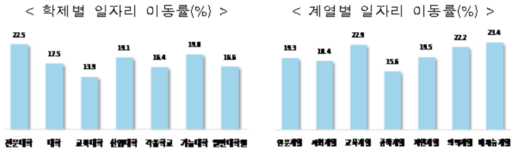 또한, 올해부터는 통계청(청장 류근관)과 협업하여 졸업자의 취업 후 1~2년간 일자리 이동 현황 및 경로를 다각적으로 파악할 수 있도록 ‘고등교육기관 졸업자 일자리 이동통계’(이하, 이동통계)도 발표하였다.
